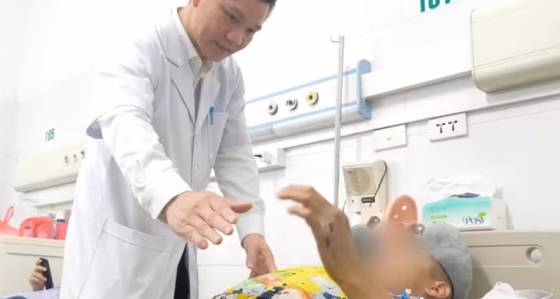 Được phát hiện ngay tại hiện trường, anh S. nhanh chóng được đưa tới Khoa Cấp cứu của Bệnh viện Bệnh Nhiệt đới Trung ương (Hà Nội). Khi nhập viện, bệnh nhân đã ở trong trạng thái hôn mê sâu, đồng tử giãn, và chịu đa chấn thương nghiêm trọng: